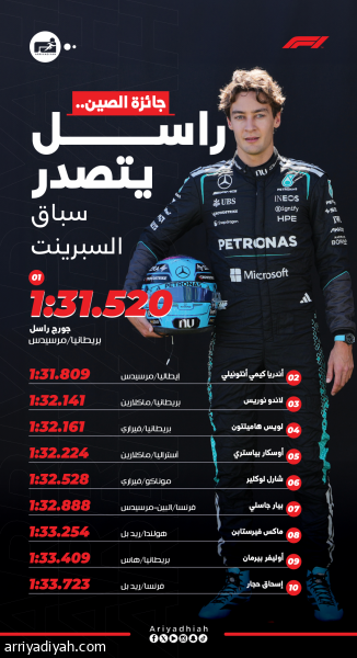 جائزة الصين.. راسل يتصدر سباق السبرينت