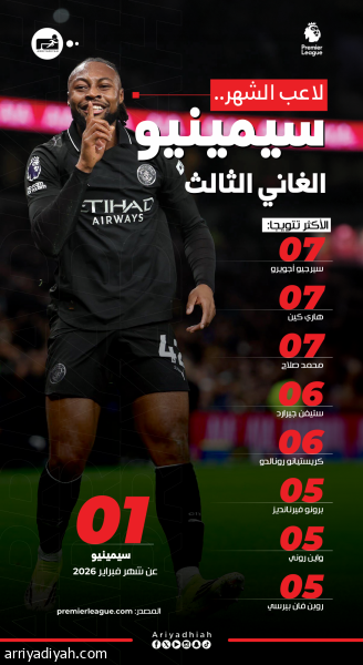 لاعب الشهر.. سيمينيو الغاني الثالث