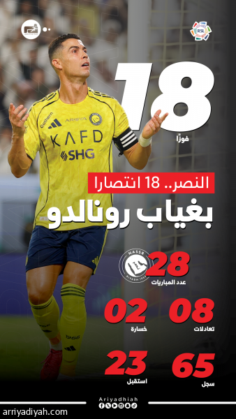 بغياب رونالدو.. النصر 18 انتصارا